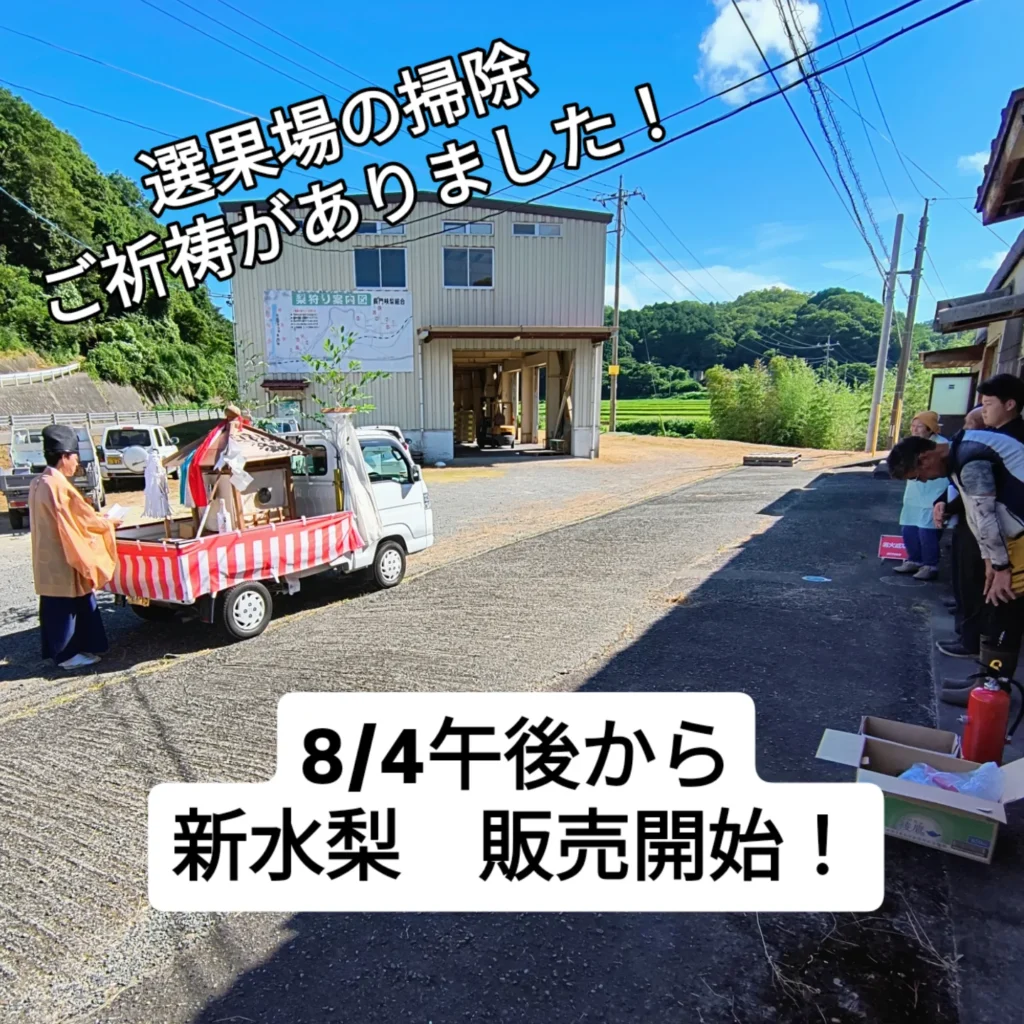 先日、組合員総出でシーズン前の選果場の掃除、近くの生雲八幡宮の宮司さまによるご祈祷がありました。